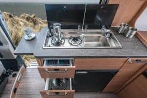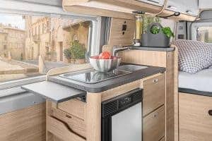 Der Boxstar 540 Road / CaraBus 540 ist zwar vor allem praktisch, aber das heißt ja noch lange nicht, dass er nicht auch schön sein kann. Von dem modernen und geschmackvollen Farbkonzepten, über die stimmungsvolle Beleuchtung, bis hin zu den zahlreichen kleinen Details, gibt es im vielseitigen kleinen Moon Camper eine Menge zu sehen. Eine vollwertige Küche, ein Kompaktbad mit Dusche, Toilette und Waschbecken und ein komfortables Doppelbett im Heck sind nur ein kleiner Teil der hochwertigen Innenausstattung.