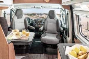 - Fahrer- und Beifahrersitz original Captainchair-Sitze mit Armlehnen drehbar und höhenverstellbar