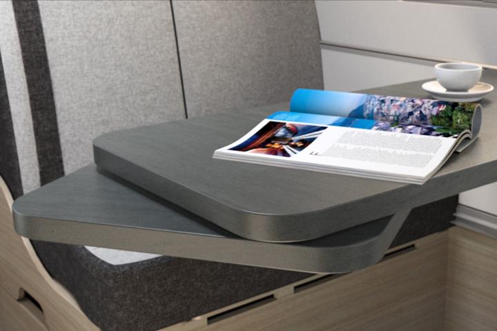 - Dinettentisch mit freiem Zugang, ausdrehbar mit doppelter Tischplatte