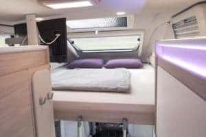 Der Boxstar 600 Lifetime XL und der Boxstar 600 Street XL lassen sich spielend vom Tag- in den Nachtbetrieb umwandeln. Das Hochdachbett lässt sich besonders einfach mit nur einem Handgriff ein‐ und ausfahren. Ein spezieller Mechanismus sorgt dafür, dass es sicher einrastet. Der Moon-Camper Street und Lifetime XL verfügen über ein großes Doppelbett im Heck. Beim Liefetime XL handelt es sich um ein großes Doppel-Längsbett mit 2 Einzelschlafplätze in der Größe 200x85cm und 189x85cm. Das große Hubbett im Bug hat eine Größe von 190x130cm. Im Street XL befindet sich im Heck ein großes Doppel-Querbett (195x145cm). Das Hubbet ist mit einer Größe von 207x130cm für jedermann geeignet.