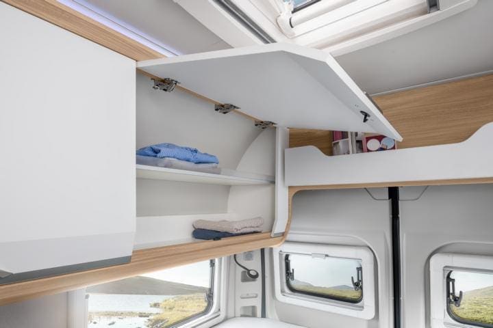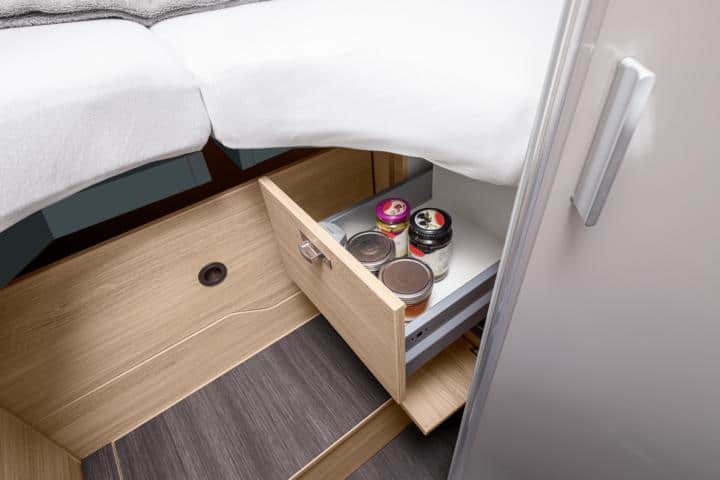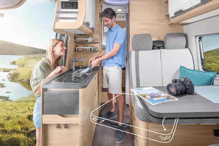 Der Boxstar 630 Freeway ist zwar vor allem praktisch, aber das heißt ja noch lange nicht, dass er nicht auch schön sein kann. Von den modernen und geschmackvollen Farbkonzepten, über die stimmungsvolle Beleuchtung, bis hin zu den zahlreichen kleinen Details, gibt es im vielseitigen Boxstar 630 Freeway eine Menge zu sehen. Eine vollwertige Küche, ein Kompaktbad mit Dusche, Toilette und Waschbecken und ein komfortables großes Doppelbett mit Einzelbetten sind nur ein kleiner Teil der hochwertigen Innenausstattung.