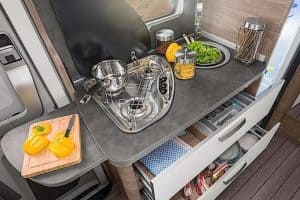 Das offene Raumkonzept mit zahlreichen Fenstern lässt im Interieur des Live I das Auge wandern – von einem Highlight zum nächsten. Ob das stilvolle Möbeldesign, die großzügige Küche, das Komfortbad mit Dusche, Waschbecken und Toilette oder die atmosphärische Ambiente‐Beleuchtung: Im Live I stimmt jedes Detail, für einen Innenraum, der in dieser Klasse seinesgleichen sucht!