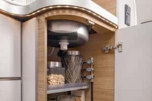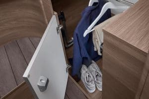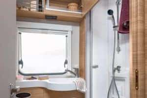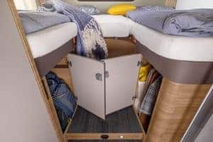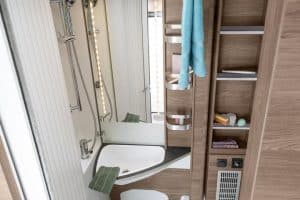 Ob in den Heck‐Einzelbetten, die sich spielend in eine große Liegewiese umbauen lassen oder im großzügigen Hubbett, das sich besonders weit herunterfahren lässt: Im Live schläft man immer wie auf Wolken. Dafür sorgen die hochwertigen Kaltschaummatratzen ebenso wie die gemütliche Wand‐ und Deckenverkleidung. Des Weiteren ist der Live I mit einem großzügigem Komfortbad ausgestattet. Hier sorgt die innovative Schwenkwand dafür, dass Sie immer genau den Raum zur Verfügung haben, den Sie gerade benötigen. Der eingesparte Raum kommt dem Wohnraum zugute.